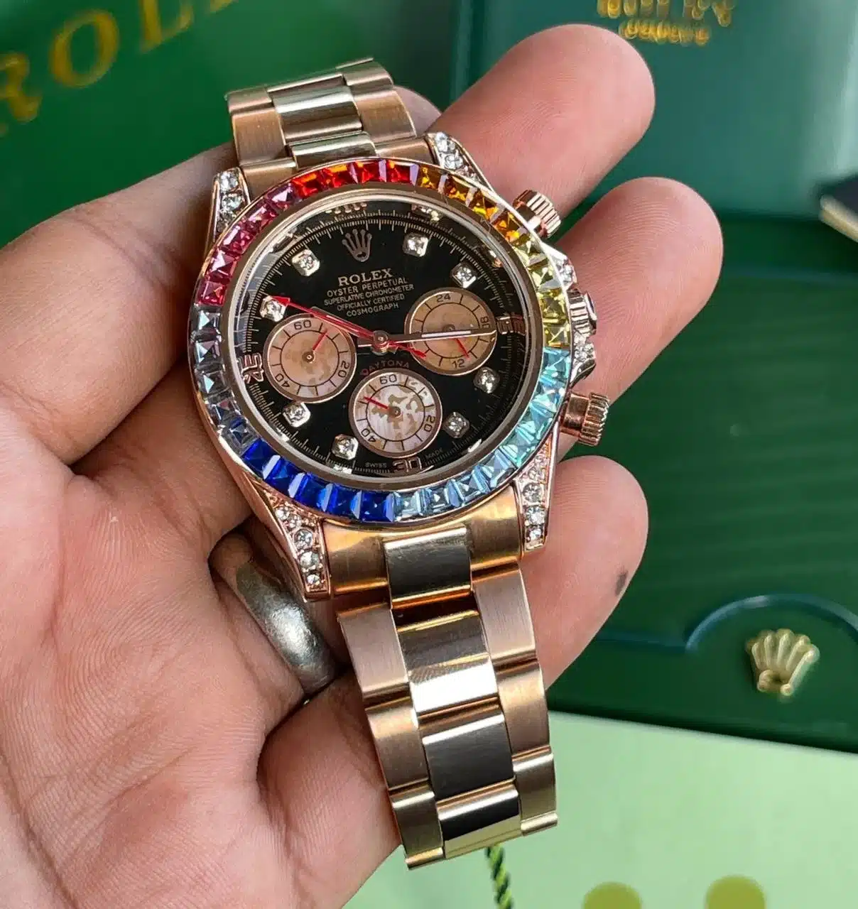 Branded Rolex Watch Rainbow Chronograph For Men’s