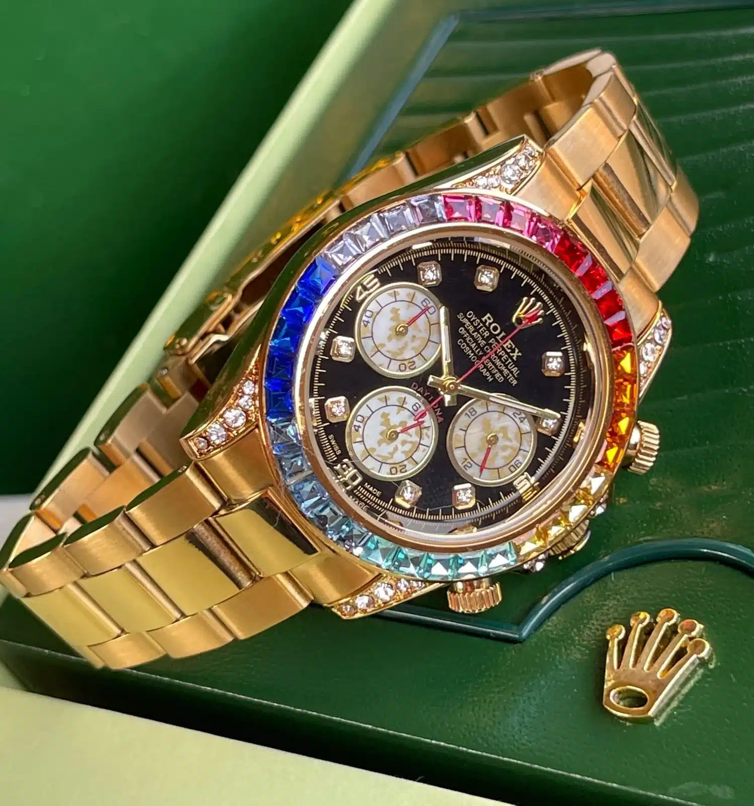 - Package Contain: It’s Has 1 Piece of Rolex Rainbow Chronograph Watch