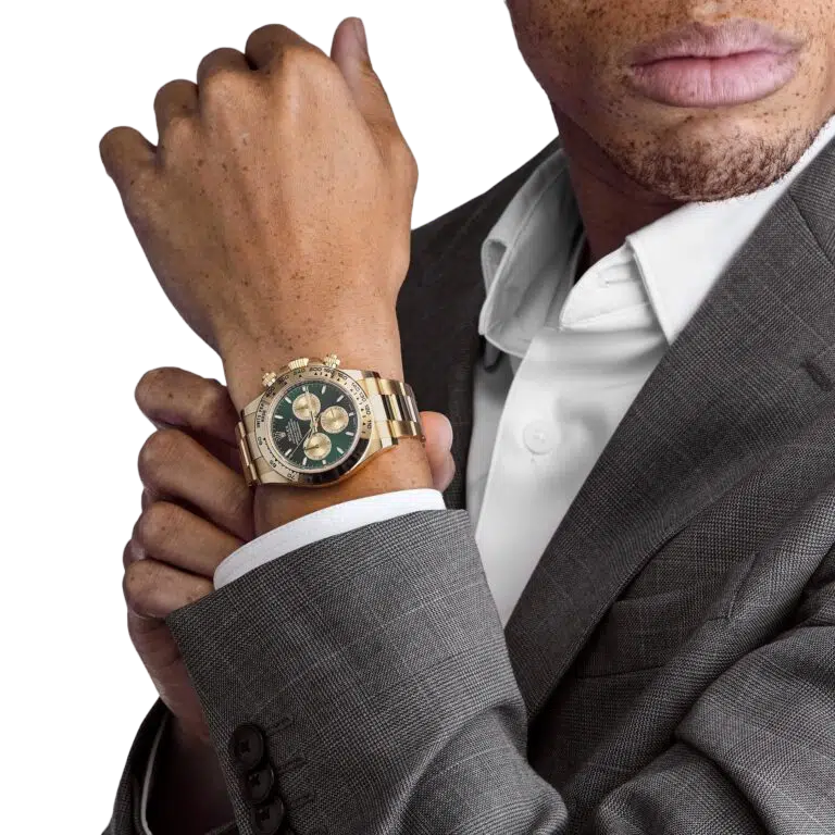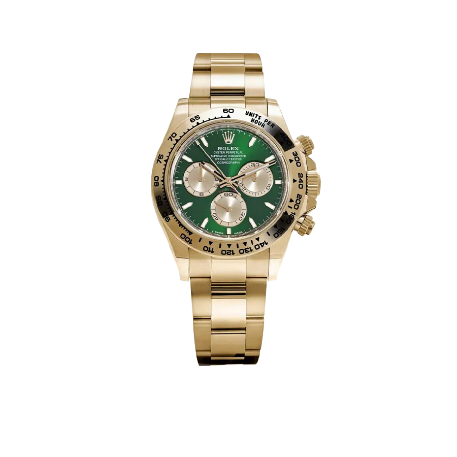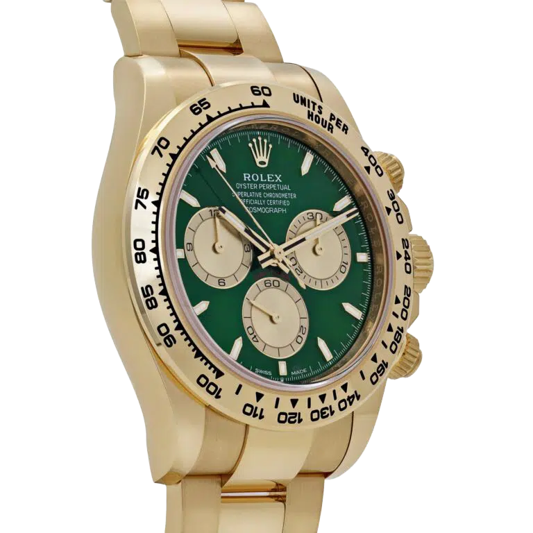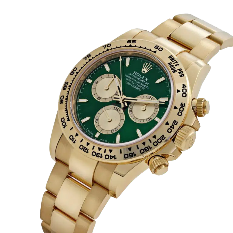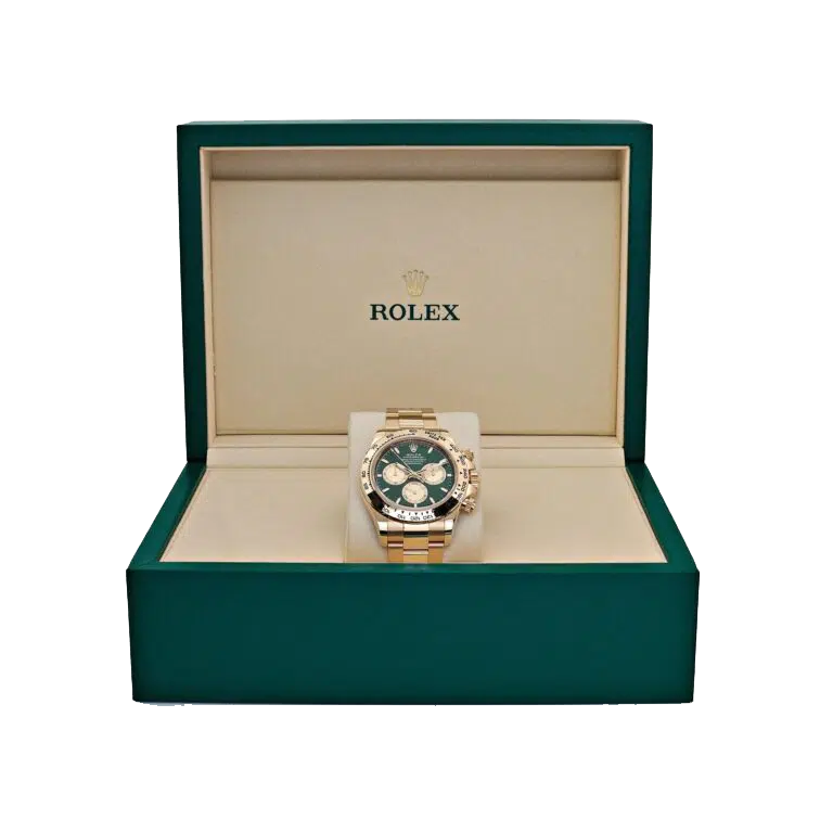 Paired with an Oyster bracelet in matching yellow gold and equipped with the Easylink comfort extension, the watch blends sporting functionality with elegant luxury. Revered by collectors and enthusiasts alike, the Daytona 126508 Green Dial remains a modern classic—now made even more compelling with Rolex’s latest technical advancements.